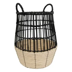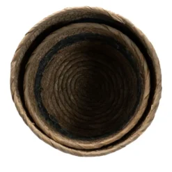 Set Of 2 Wrapped Rim Baskets Banana Leaf, Corn Husk & Metal – Foreside Home & Garden
