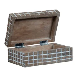 Handcarved Plaid 6×4″ Lidded Decorative Wood Storage Box – Foreside Home & Garden