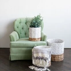 White Metal, Wood & Jute Wall Basket – Foreside Home & Garden