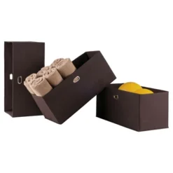 3pc Melanie Woven Fiber 2 Small And 1 Large Basket Set Chocolate – Winsome