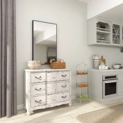 This 3 tiered metal serving stand is a great decorative basket rack for coffee and side tables, the dining area, and the kitchen. Let this tiered server provide a sense of style and function to your home for a clutter free surface space. Whether in your kitchen, or on your coffee table, it’s a great way to display and store your favorite things. Designed with black rubber stoppers at the base that prevent scratching furniture and table tops, as well as sliding around. This item comes shipped in one carton. Suitable for indoor use only. Farmhouse-themed style. Please note that this item is for decorative purpose use only and are not food safe.