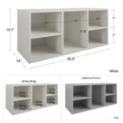 Badger Basket’s Two Bin Stackable Storage Cubby/Bin is a sturdy, modular storage solution for keeping all sorts of items tidy in any room. Features two, large, open compartments and it can be stacked with other bins to expand your storage capacity (each unit sold separately). Use for storing books, papers, media, dolls, toys, sporting goods, games, craft supplies, linens, and more! Wide mouth openings make it easy to load and unload. When you need to clean up quickly, it is a breeze to stuff everything inside! Great for kids when learning to sort and organize. Top surface offers an additional place to keep collections and treasures. Easy to clean, solid panel, smooth surface construction. Made of engineered wood with melamine lamination. Badger Basket’s Two-Bin units can mix and match with Badger’s Three-Bin and Shelf Storage units. Overall unit measures approximately 37.25 inches L x 19.25 inches W x 17.25 inches H. Each bin measures 16.75 inches L x 17.25 inches W x 15.75 inches H. Height from floor to top edge of front panel is 9.25 inches. Assembled weight: 30.5 pounds. All measurements approximate. Wipe clean and dry thoroughly. Adult assembly required. When stacking multiple bins, you must always use the included safety brackets to secure the units together. If stacking three or more bins high, we recommend using wall anchor/furniture safety straps (not included) to anchor the units to the wall for safety. Wall anchor straps are not included due to the many types of walls found in homes. Please consult with your local hardware retailer. Product may vary slightly from shown. Props/accessories shown are for illustration purposes only. Product complies with all currently applicable safety standards. Actual color/finish may vary from screen display. This item ships in its original carton that may include a product photo. Soft plastic/rubber toys (such as balls) can react with the finish when left in prolonged contact. Be mindful of what is stored in the unit.