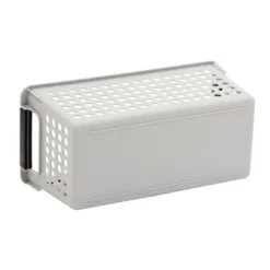 - Plastic Storage Basket: Create a custom organization system in your bathroom, wash room, laundry room, hall closet, or playroom with these grey plastic baskets