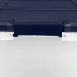 - Latched handles keep the lid secure for fuss-free storage and worry-free moving
