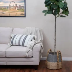 This intricately woven Side-by-Side Magazine Rack from Household Essentials is handcrafted from natural cattail. It’s perfect for tucking away all your favorite magazines, puzzle books, journals and documents. The timeless detailing and natural appeal will carry this sophisticated storage piece through every home refresh. The structured metal frame ensures the strength and longevity of this magazine rack. The natural fibers are protected with a humidity-resistant coating for long-lasting quality. A center divider creates the potential for detailed organization and also acts as a built-in handle. Add a touch of natural beauty to any living space with this Side-by-Side Magazine Rack. Note: Size and color may vary slightly as this is made of natural fibers.
