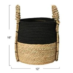 This stunning Terra Basket from Household Essentials is handwoven from natural cattail and paper rope. It will transform any bedroom or living space by stylishly stowing away throws, textiles, or bits and baubles. Neatly corral any bulky, rarely used, or unsightly household items in the ample storage space, and utilize the sleek, integrated handles for easy mobility. The structured metal frame ensures the strength and longevity of the piece. Timeless detailing and natural appeal will carry this sophisticated Terra Basket through every home refresh. Note: Size and color may vary slightly as it is made from natural materials.