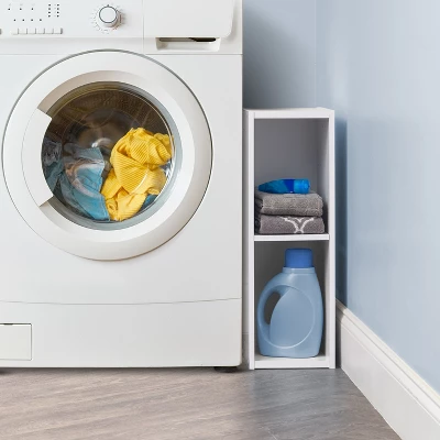 Make the most of your space with this slim shelf. Squeeze this 7 inch shelf between a wall and fridge in the kitchen, next to sink in a bathroom, or other hard to fit spaces. Shelf is adjustable in 1 inch increments. Can be stacked and connected with other units or attached to wall using included brackets. Weight Tolerance: 22 lbs. per shelf, 66 lbs. total. Assembly and Wall mount hardware included (screwdriver required). Compliant with CARB Regulation 93120 â Phase 2