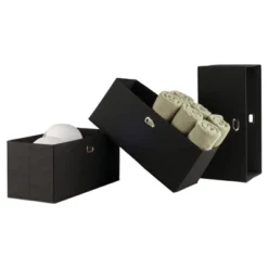 Organize your living room, rec room or den with this Capri Set of Foldable Fabric Baskets from Winsome. This set of four foldable baskets comes in cream for a look that mixes easily with your existing decor, and the foldable design makes them easy to store when not in use. Handles on two sides offer a convenient carrying option, while the cube shape makes them an ideal addition to any coordinating shelving unit. They open to a size of 10.9″W x 10″D x 9″H.