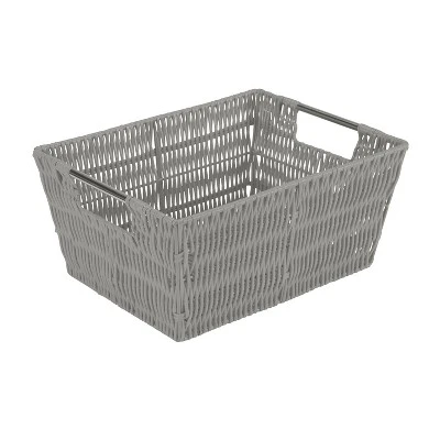 Organize and create storage in your home with the Simplify Rattan Tote Basket Collection. Simplify’s Rattan Tote is a PE Basket with an iron frame and 2 sturdy stainless steel carry handles. It is strong and durable prolonging it’s life, and it’s lightweight design makes it easy to lift and carry. Fits any home decor with it’s wide selection of colors. Store your household belongings and organize space with these stylish baskets. stack them together in a corner of your craft area, home office or dorm to keep your essentials close at hand in an organized manner.