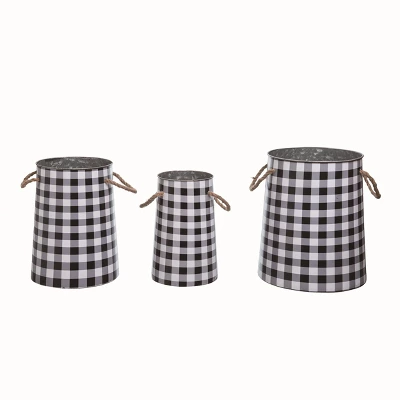 Transpac Metal Black Harvest Nesting Buffalo Check Buckets Set Of 3